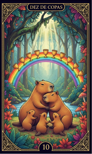 Invertida, essa carta mostra tensões familiares ou desilusões afetivas. A Tia diz: nem tudo é conto de fadas, mas o amor verdadeiro resiste.