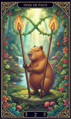 Quando o Dois vem virado, há indecisão e medo de sair da zona de conforto. A Tia te aconselha: não deixe o medo travar o progresso. O futuro sorri pra quem se arrisca com o coração em paz.